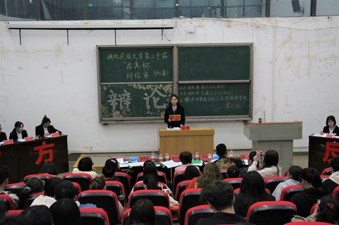 比赛分为开篇立论、一对一攻辩、攻辩小结、自由辩论、观众提问、总结陈词六个环节。正反方围绕“朋友圈是否属于公众场合”展开辩论。最终,经济与管理学院代表队以84.5分夺得桂冠,正方二辩吕晓惠荣获最佳辩手称号。