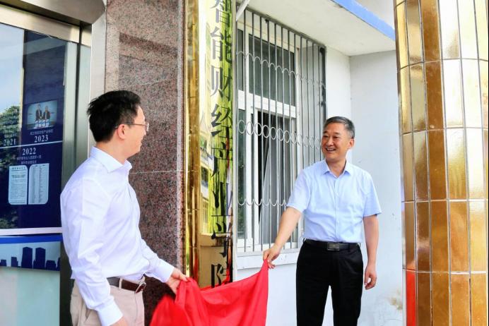 会后,参会成员移步至文瀚楼大门,共同见证365电子娱乐官方网站与上海高顿教育“智能财经产业学院”的揭牌。