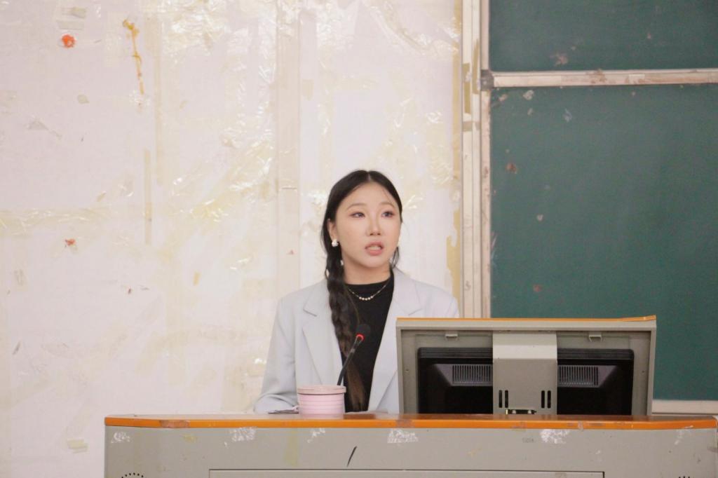 优秀教师代表李庆玲讲话。她指出,大学校园包容自由,能为学生成长提供广阔空间,并表示自律是自我约束、自我管理,学生应合理规划时间,专注学业,以扎实的学识积累增强未来选择的底气。