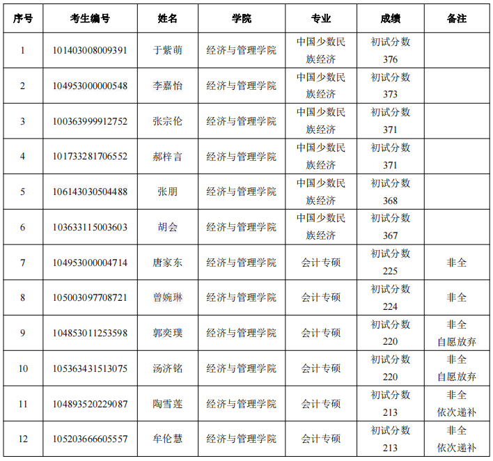 365电子娱乐官方网站经济与管理学院2023年调剂复试人员名单公告(二)