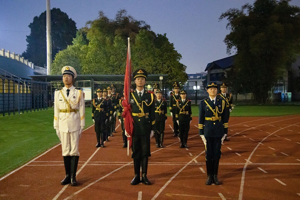 活动在庄严肃穆的国歌声中拉开序幕。张典讲话。他围绕党的二十大讲述国家百年来的发展历程,倡导当代大学生深入学习贯彻党的二十大精神,强化道德素质,明确责任使命,实现人生价值。