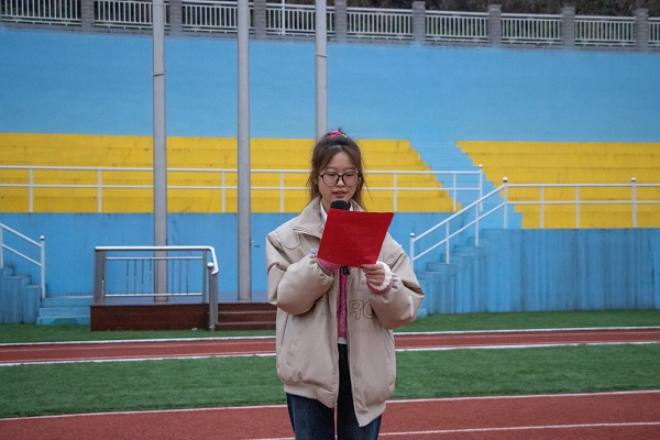 2022级学生代表杨诗妤发言。她从中国共产党的历史发展路程出发,以基层工作者取得的成果为例,介绍中国变化之巨大。她表示,青年学生要积极响应二十大号召,紧跟党的步伐,用激情与热血去谱写新时代。