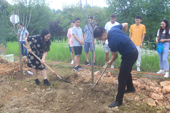 挥锹铲土填树坑,培实新土堆围堰。学院领导、老师以及2021届毕业生代表共同种下两棵象征着坚韧、健康、长久的海棠树,并在两棵海棠树上挂上毕业纪念牌以作标记。毕业生希望在今日种的树可以代替自己,见证母校的成长与变化。培土完成后,毕业生与各位老师在树边合影留念。