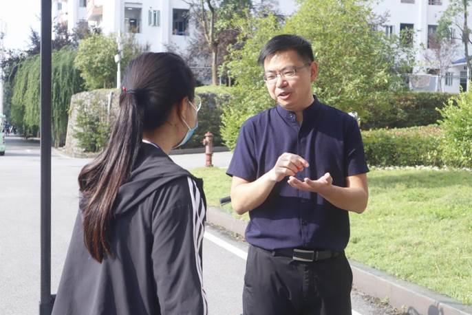 学生科科长曹骞为新生答疑解惑 李瑶/摄