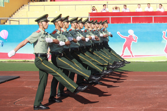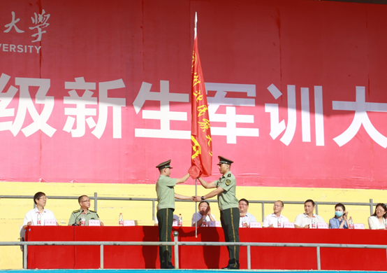 校党委副书记、副校长汪兴平为军训团授旗 李兰/摄