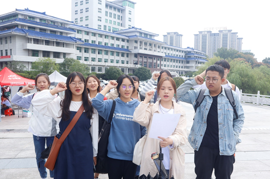 本网讯(记者 赵依婷 俞静/文 熊海婷 赵依婷/图)2021年10月14日,大学生心连心互助社第十三届支教志愿者出征仪式在大学生广场举行。大学生心连心互助社社长杨洋、社团部分工作人员及十一名志愿者参与此次活动。