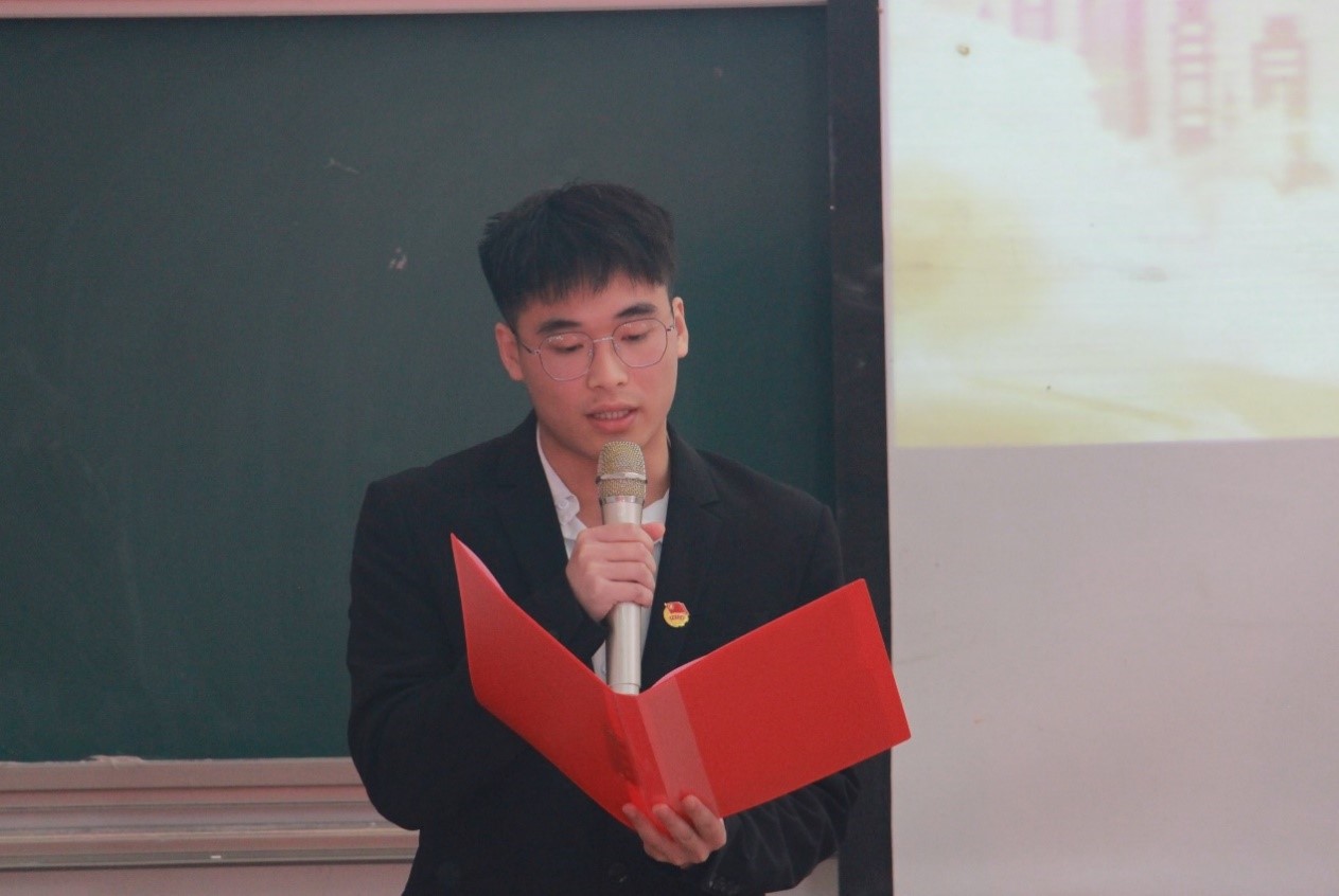 第一期优秀学员代表陈瑜康发言。他认为,学生应积极学习马克思主义中国化最新成果,成为马克思主义理论实践创新成果的继承者和发扬者,完成时代赋予青年的使命,成长为中国革命、建设和改革的坚实力量。本期学员代表陈荣辉发言。他以当今社会环境为背景说明开展青年马克思主义培养工程的必要性,并鼓励学生不断充实自己,以实际行动实现人生价值,成长为中国特色社会主义合格、可靠的接班人。