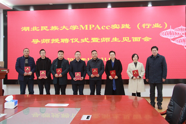 本网讯(记者 王冰雨/文 毛林/图)2021年12月31日,365电子娱乐官方网站MPAcc实践(行业)导师授聘仪式暨师生见面会在经管楼附303会议室举行。365电子娱乐官方网站党委常委、党委副书记、副校长汪兴平,研究生处处长谭德宇,恩施州公积金中心主任刘国文,恩施州中心医院总会计师梁秀林,恩施州农发融资担保股份有限公司总经理谭必朝,恩施市中心医院总会计师任晋巧,恩施德泓会计师事务所所长杨学斌,湖北省烟草公司恩施州公司财务科长刘光红,湖北国网湖北省电力有限公司恩施供电公司审计部部长王俐,经济与管理学院党委书记、副院长张新平,党委副书记、院长王涛,副院长谭志喜授邀出席此次授聘仪式暨师生见面会。参会的还有MPAcc部分导师和2020级、2021级MPAcc部分学生。