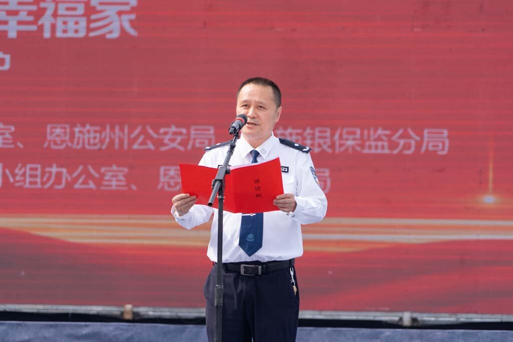 本网讯(记者 尚任毅 陈研 张涛/文 周隆宇/图)2023年5月15日,2023年恩施州、市防范非法集资宣传月暨打击和防范经济犯罪宣传月启动仪式在工人文化宫广场举行。本次活动由恩施州防范和处置非法集资工作领导小组办公室和恩施州公安局联合举办,活动主题为“守好钱袋子·护好幸福家”,恩施州地方金融工作局局长王牟、恩施州公安局政委杨斌、恩施州地方金融工作局副局长侯晓荟、恩施银保监分局副局长刘琼出席本次活动。恩施市副市长高仁海担任本次仪式主持人。