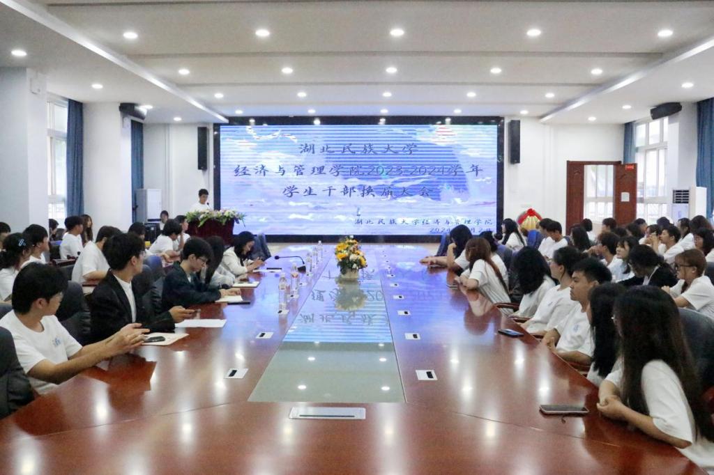 学生干部代表黄国轩发言。他表示,作为经济与管理学院的学生干部,在过去的一年里,经历了许多挑战和机遇,也取得了不少成绩和进步,学生干部的工作永无止境,仍需不断进取、追求卓越。同时,他希望在未来的工作中各成员能以创新为动力、以团结为基石,做到同心协力、携手共进,不断提升自身综合素质和工作能力。