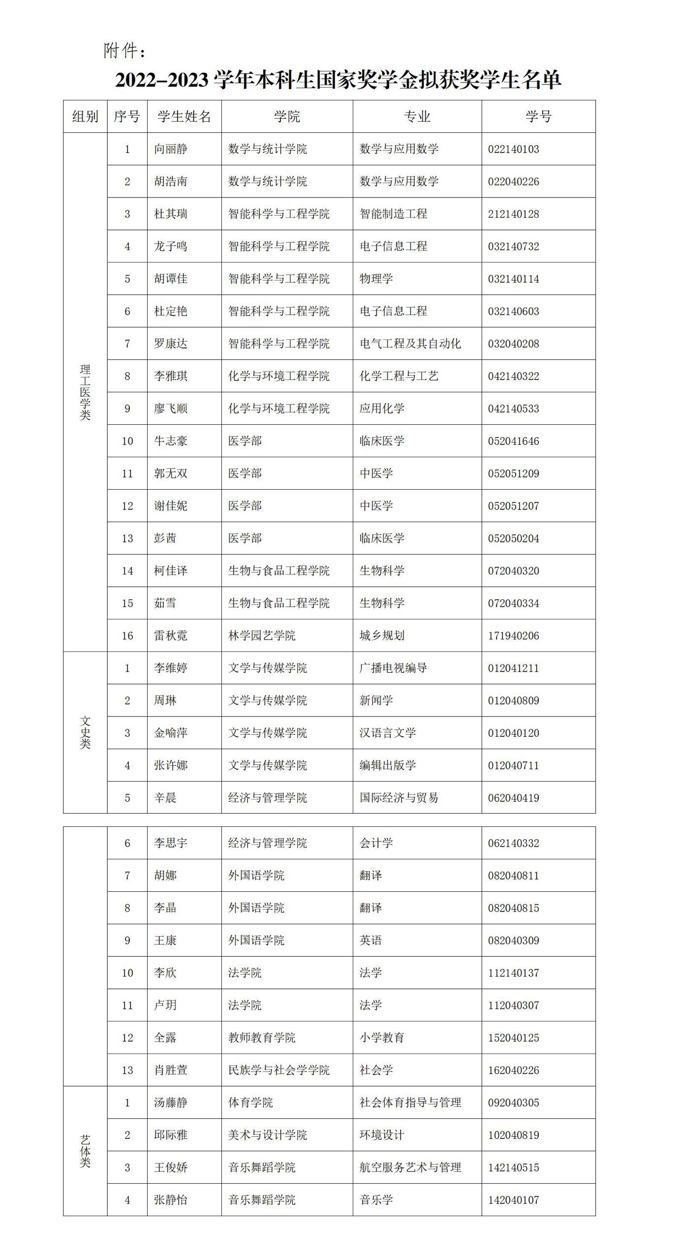 根据《湖北省学生资助管理中心关于做好2022-2023学年本专科生国家奖学金初评工作的通知》、《365电子娱乐官方网站本科学生国家奖学金实施细则》(民大校办发〔2020〕67号)、《365电子娱乐官方网站关于开展2022-2023学年国家奖学金评审暨国家奖学金答辩评审会的通知》等文件精神,经各学院(部)初评推荐、学生工作处组织答辩评审,经济与管理学院20级国际经济与贸易专业062040419辛晨、21级会计学专业062140332李思宇荣获2022-2023学年本科生国家奖学金。