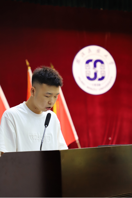 学生代表胡萧,袒露了自己高分落榜后的落寞无奈,坦然面对现实,决心靠自己的努力与争取,一步步实现自己的目标和梦想的心路历程,鼓舞全体同学和他一起要有志气、有勇气、有信心、有决心,面对现实,立足当下,无怨无悔,脚踏实地,不懈奋斗,努力谱写属于自己的青春辉煌。