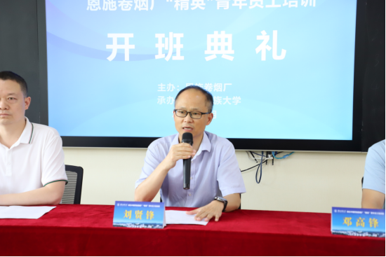 7月9日下午,恩施卷烟厂“精英”青年员工新媒体宣传能力提升培训班在学校正式开班。学院副院长刘贤锋、文学与传媒学院教师邓高锋以及恩施卷烟厂青年员工学员参加开班仪式。