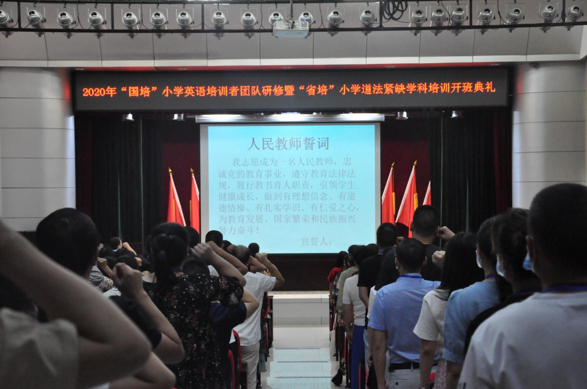 本期培训班是省教育厅安排我校今年承担的11个国培省培项目中第2期开班的2个培训项目,共有3个班,其中1个小学英语班50人、2个小学道德与法治班各100人,学员为来自全省各地区、各市县小学英语老师和道德与法治老师,每个班历时10天。