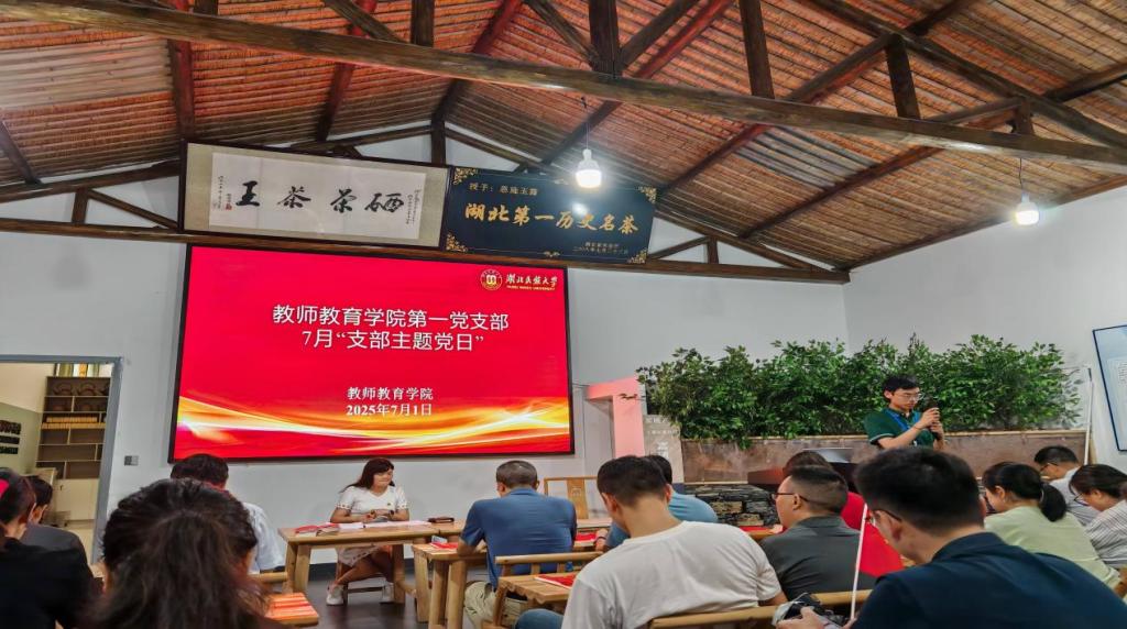 第一党支部书记黄鸿以《一杯清茶忆党史 初心如磐映党心》为题讲党课。通过陈嘉庚到访延安喝了一杯“百姓茶”、共产党春节团拜仅奉“清茶一杯”等党史故事,结合学校开展的茶廉活动告诫所有党员要以茶的“清、简、俭、惕”品质加强学习,践行中央八项规定精神,加强自身作风建设,永葆入党初心!
