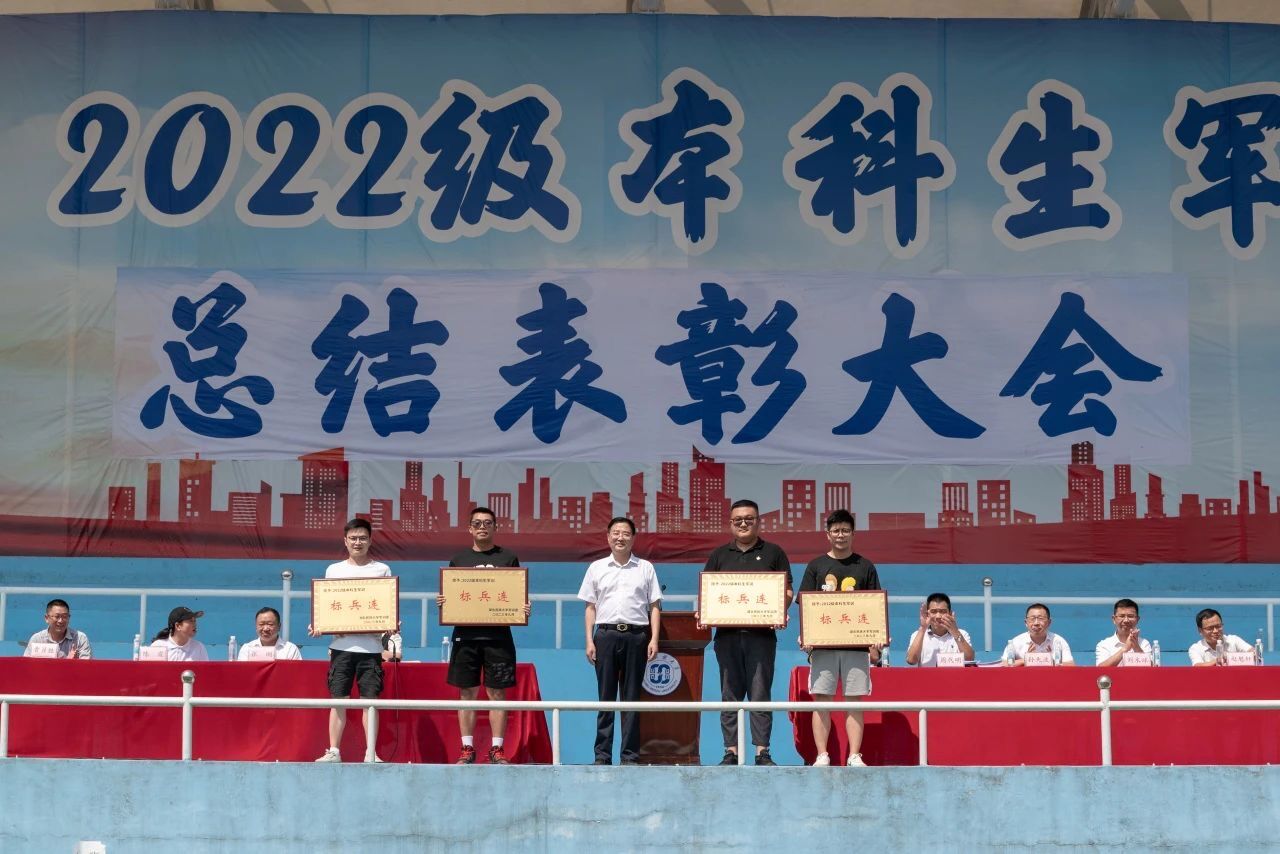 本网讯(通讯员 张诗雪)9月11日上午,365电子娱乐官方网站民族体育场,365电子娱乐官方网站2022级本科生军训总结表彰大会在庄严的国歌声中拉开帷幕,为期7天的大二学生军训正式结束。在总结表彰大会上,由教师教育学院2022级本科生及指导老师和教官组成的七连荣获“标兵连”称号,军训教官许磊荣获“优秀教官”称号。