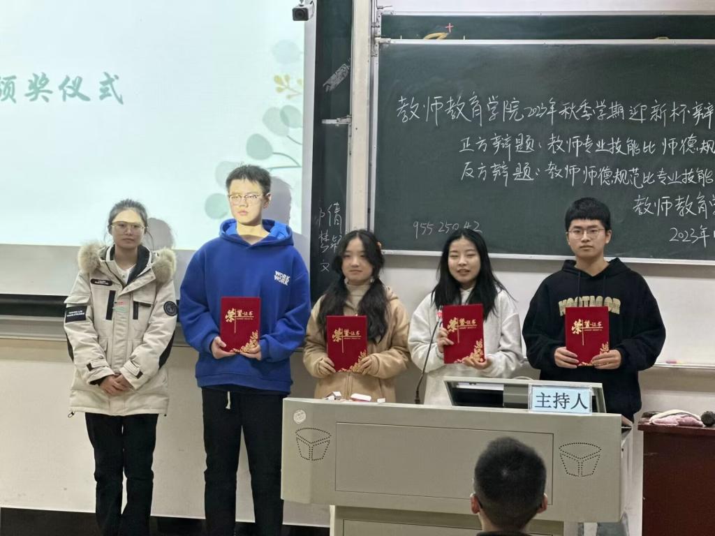 本网讯(通讯员 丁莉)为锻炼学生思辨能力,增强学生综合素质,11月17日,由教师教育学院学生会承办的以“我思故我在,我在故我辩”为主题的“石榴杯”辩论赛决赛在德智楼9A509圆满落幕,教师教育学院辅导员吾卜力、专职教师员恒强博士担任评委。