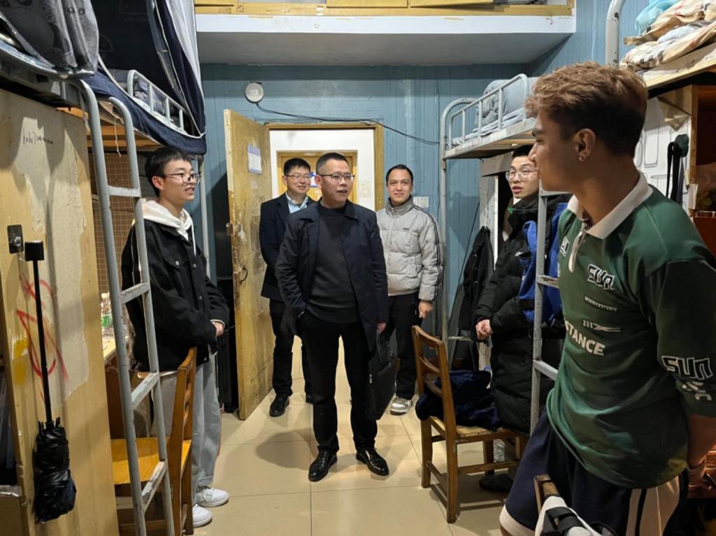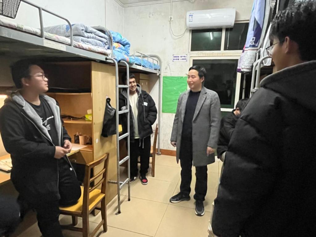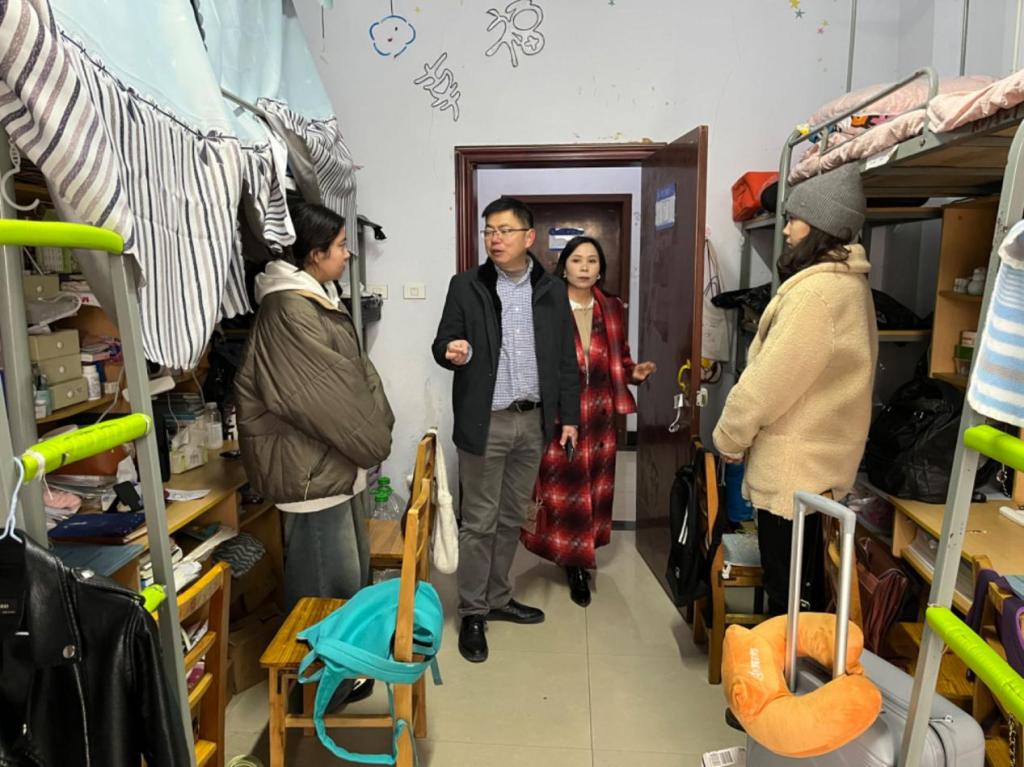 老师们与学生交心谈心,深入了解同学们在生活、实习、交往、就业等方面的情况,教育引导同学们强化安全意识,筑牢安全防线,加强寝室建设,鼓励室友之间加强相互了解、相互尊重、相互谦让、相互赞美,建设团结互助、团结共进、团结奋斗的寝室文化,勉励同学们共同建好寝室“小空间”、一起赢得人生“大世界”。