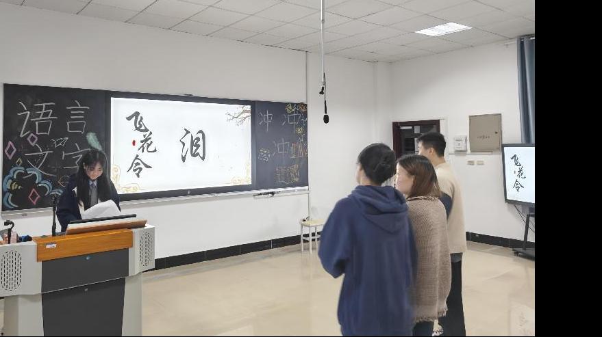 活动分为“散词造句”“你比我猜”“辨识甲骨”“诗词飞花令”四个闯关环节,以及“叠词知多少”“这位作家我知道”两个集体挑战环节。参赛人员凭借自身的文化知识积累,完成了一项项文字闯关与挑战,既有趣味性,又有文化性,弘扬了文化之韵,传播了汉字之美,鼓励青年学生做语言文化的传承者、传播者、创新者,在一撇一捺间写出汉字的风骨,在一字一句中话出语言的艺术。