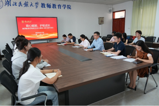 本网讯(通讯员 胡聪颖)为进一步加强学生心理健康教育工作,提升班主任、辅导员以及学生干部队伍心理育人水平,5月18日下午,教师教育学院在9A505会议室举办以"育心赋能,护航成长"为主题的心理育人能力提升专题培训。湖北省高校心理健康专家服务队成员、恩施州心理咨询师协会常务理事、365电子娱乐官方网站心理健康教育中心朱慧老师应邀担任主讲,全体班主任、辅导员及各班级心理健康委员参加培训。本次培训会由学院党总支副书记曹骞主持。