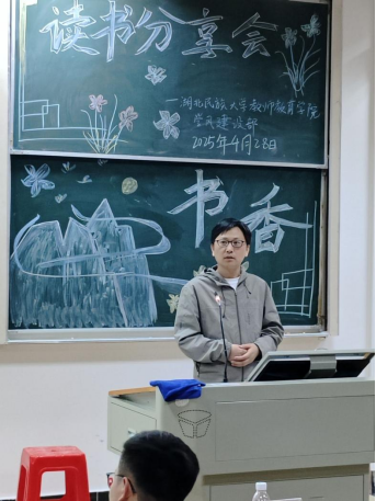 本网讯(通讯员 武子彤)4月28日,教师教育学院学生会在德智楼9B509隆重举办以“品教育名著,悟育人智慧”为主题的2025届“小石榴”读书分享会,小学教育系教师员恒强、卢浩宇,辅导员李志刚出席本次活动并担任评委。