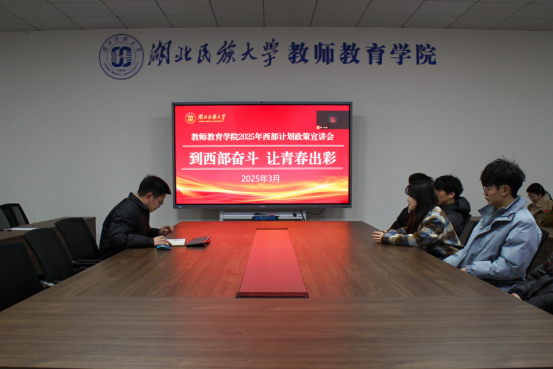 本网讯(通讯员 饶印思 胡聪颖)“到西部去,到基层去,到祖国和人民最需要的地方去”,教师教育学院于2025年3月13日在学院会议室举办了以“到西部奋斗 让青春出彩”为主题的西部计划政策宣讲会。宣讲会由教师教育学院团委书记李志刚主持,小学教育2025届在校的毕业生到场聆听。