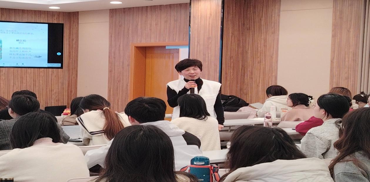 “当我们把《将进酒》《赠汪伦》等古诗放入‘唐代文人社交’的大语境,让学生为李白设计朋友圈文案、撰写‘点赞评论’,经典文本就活在了当代生活中。”她特别强调:“教学创新的本质是回归教育初心——看见每个学生的独特性。”作为心理咨询师,她倡导“以生为本”的教学理念,鼓励学生积极参与课堂讨论,要运用课堂技巧激发学生的学习兴趣和创造力。毛琼还分享了如何通过课堂观察识别学生的学习风格,运用积极心理学原理构建支持性课堂生态,为师范生提供了教育教学与心理辅导的双重启示。