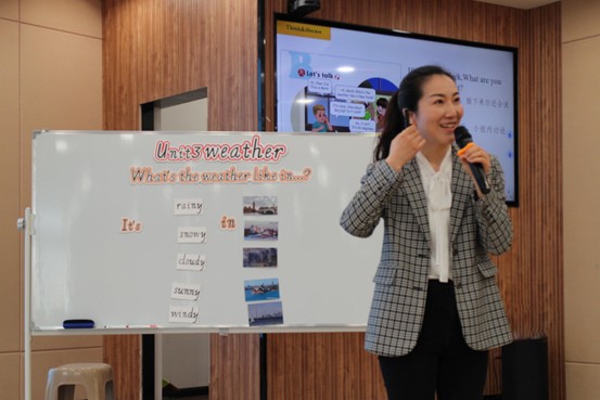 讲座中,刘金乔以教育部“基础教育精品课”《MyHome》为例,解析了从教材文本到教学活动的转化过程。她设计了一系列递进式任务,如“家庭布局图描述”“房间功能对话”“家居设计提案”等,将听力训练、口语表达、读写结合与思维可视化进行了有机融合。为了让师生们更直观地感受任务型教学法的实践魅力,刘金乔老师还特别设计了“天气主题”互动工作坊。在工作坊中,师生们通过电话卡牌对话、小组情景剧创编等沉浸式活动,亲身感受任务型教学法的独特魅力。“真正的语言学习发生在真实的交际需求中。”刘金乔老师着重强调,教师应成为“意义建构的促进者”。以《Seasons》单元的教学为例,她引导学生通过制作双语节气海报、采访外籍教师等活动,实现了语言能力与文化意识的双向提升。