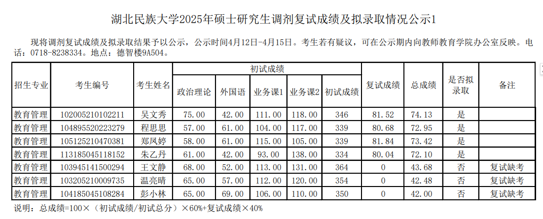 365电子娱乐官方网站2025年硕士研究生调剂复试成绩及拟录取情况公示1