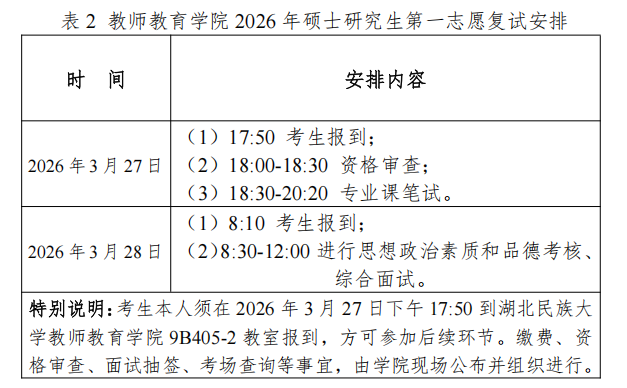 (3)资格审查:考生于2026年3月27日18:00时到教师教育学院9B405-2教室进行资格审查。资格审查时考生须提供以下材料: