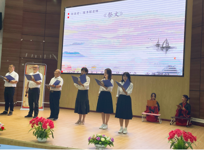 朝气蓬勃的中学生齐声诵读《弟子规》拉开活动序幕,接着大家观看视频回顾了孔子的一生,图书馆老师共念祭文以表尊敬,勤工助学团学生诵读论语名句回顾国学经典,体悟先贤谆谆教诲和仁爱精神,最后,教师代表宣读倡议书,号召广大师生尊崇圣人,倡导礼仪,汲取千年不变的智慧之光。