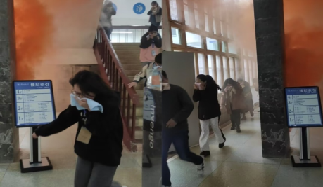 十点整,随着现场总指挥一声令下,警报声响起,平静的图书馆内浓烟滚滚,助学团学生在老师的带领下,弯腰捂鼻,沿着指定路线快速有序地从老馆四楼逐层撤离到一楼大门前的广场。到达集结区域,由楼层定点引导疏散负责人清点撤散人员数量,火灾演练顺利完成,整个过程紧张迅速,有条不紊。