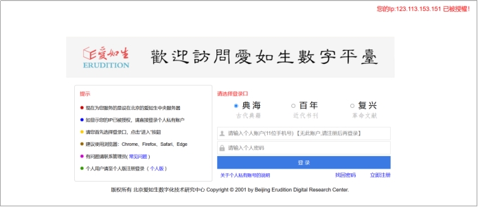 爱如生红色历史文献库登录办法