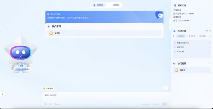 为进一步丰富图书馆服务功能,强化智能服务、高效赋能师生读者的阅读学习,图书馆持续深化数字化标杆应用场景建设,推出了“AI馆员——民图君”上线运行!