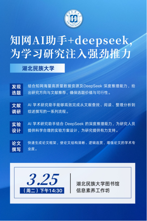 资源与服务丨图书馆信息素养工作坊开课啦——知网AI助手+deepseek,为学习研究注入强劲推力讲座