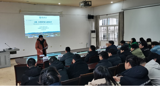 本网讯,12月20日,中国林业科学研究院林业科技信息研究所副所长叶兵研究员,林业战略与规划研究室主任何友均研究员,北京林业大学经济管理学院谢屹教授,在生物资源保护与利用湖北省重点实验室学术报告厅开展了以“自然保护地与森林康养”和“关于建立以国家公园为主体的自然保护地体系的思考””为主题的专题讲座。讲座由林学园艺学院院长艾训儒和研究室主任何友均共同主持,学院党总支书记姚兰、重点实验室副主任周大寨、副院长邓志军、部分教师和研究生、本科生等90余人参加了讲座。