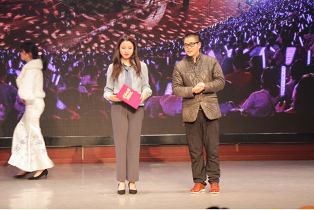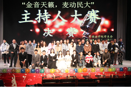 本网讯(见习通讯员 姜依维 郑爽 通讯员 毛玉梅/文 见习通讯员 秦悦 阮欣欣/图 )1129日晚,我院学生会宣传与语言文字工作部联合外国语学院在音舞演播厅举办以“金音天籁,麦动民大”为主题的主持人大赛决赛。外国语学院学生科科长粟登平,我院团总支书记刘桃元,外国语学院学生科教师田甜,我院学生会主席徐颢文,外国语学院学生会主席余红霞广播台负责人徐芙蓉应邀出席并担任大赛评委。两百余名学生到场观赛。