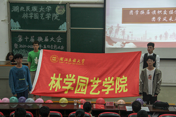 随后,第九届团总支第一副书记杜锐、第九届学生会主席徐颢文、第十届通讯社社长刘鑫淼、第二届心健委副主席郑晨依分别进行任期工作总结及未来展望。黄晶晶宣读《校、院五四表彰文件》,刘桃元和黄晶晶颁发校、院五四表彰证书。刘桃元宣读《第九届团学干部聘书颁发文件》,刘桃元和黄晶晶颁发团学干部聘书。紧接着,第十届团总支第一副书记黄超、第十届学生会主席许佳琪、第十一届通讯社社长杨宏亮、第三届心健委主席胡世奥分别进行表态发言。继而进行换届旗帜交接仪式。