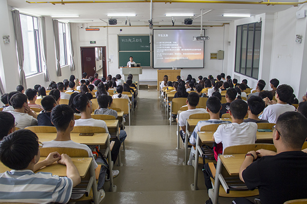 本网讯(通迅员 谢丹琪/文 阮欣欣/图)为培养学生养成良好的行为习惯,促进德智体美劳全面发展。9月7日,我院在修远楼5B205教室召开“行为规范教育”专题讲座,辅导员刘桃元担任主讲人,我院全体大一新生参加此次讲座。
