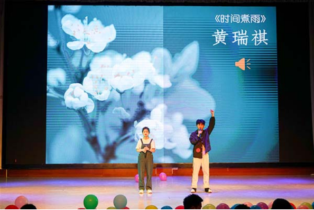 活动伊始,我院舞蹈队带来开场舞拉开决赛上半场的序幕。二号选手黄瑞琪的《微微一笑很倾城》以欢快活泼的曲调和极强的舞台表现力,充分展现学生的青春活力;三号选手卜景峰的改编版说唱歌曲《赤兔》台风稳健,张驰有度,以积极向上的精神风貌表达自己的人生态度;五号选手夏晏带来《至少还有你》,温厚的嗓音带来独属情歌的眷念,呢喃细语间坚定表达出对爱人的爱意。六号选手王楠带来《给电影人的情书》,以婉转的曲调,饱满的情意唱给广大为爱发光的电影人,更唱给努力生活努力奋斗的普罗大众,获得评委一致好评。