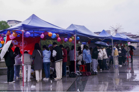 活动现场人头攒动,下雨天也没能阻挡同学们的热情,活跃在各个环节中,现场充满欢声笑语,活动有条不紊地进行。“指尖妙趣”环节,巧手慧心,串出福禄。参与者选择自己喜欢的串珠进行手工制作,串成串珠,充分发挥想象力和动手能力以体验游戏乐趣;“擎龙戏珠”环节,参与者将准备好的乒乓球移动到另一个盒子中,在30秒内集齐三个即可完成游戏;“灵心绘性”环节大受欢迎,学生领取纸张,选择喜欢的画笔颜色,绘笔旋转,色彩飞舞,放松平日紧张忙碌的心情,以画笔寄托对生活的向往和热爱,同时拉近我院学生间的距离。随后,由工作人员将绘制好的表情张贴在展示区,吸引人群频频驻足观看,用凝聚倾注在作品之上的细腻心思印证着最好的期盼。