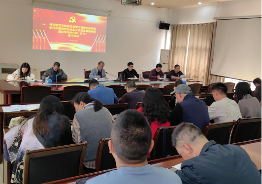 (本网讯 通讯员:张强)4月27日,学院党总支学习贯彻习近平新时代中国特色社会主义思想主题教育暨理论学习中心组(扩大)集中学习,在学院会议室开展。学院领导班子全体成员及全体教师党员参加,党总支书记邓顺松主持。