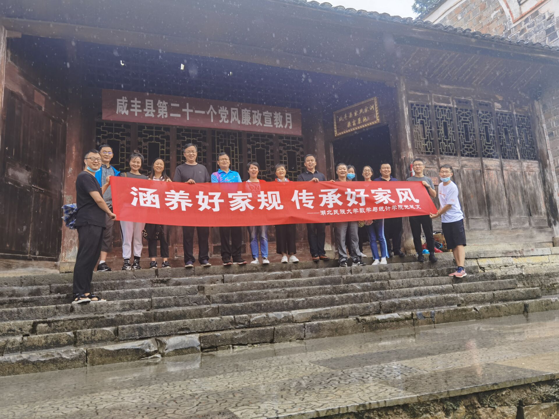为深入开展党风廉政建设宣传教育,9月12日,数学与统计学院党总支组织副科级以上干部及系主任、教师代表前往“咸丰县家风家训教育基地——严家祠堂”开展“涵养好家规 传承好家风”体验教育活动,实地感受优良家风家教传承的魅力,引导党员干部、教师廉洁自律,以优良家风涵养好的作风、教风。