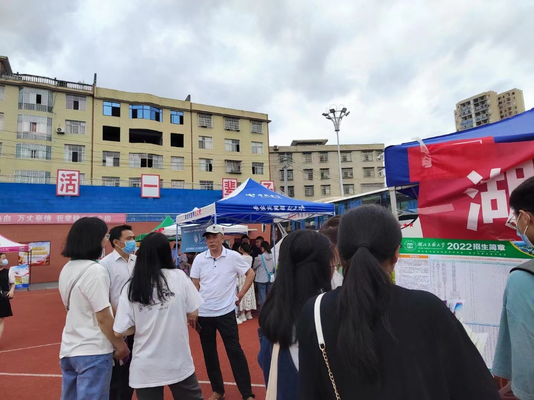 为更好地服务广大考生和家长,打通服务考生最后一公里,2022年6月26日,数学与统计学院选派唐利明副院长、秦宣华老师以及在校学生干部代表组成宣传组走进咸丰县第一中学,面对面地为百余名考生、家长解读高招政策,提供志愿填报指导服务,引导学生有效填报我校相关专业。