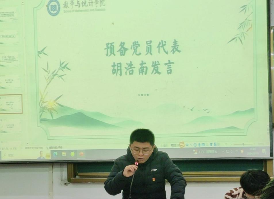 预备党员代表胡浩南希望同学们能够注重团队合作和互助精神,发挥好学生干部的的桥梁纽带作用,践行“艰苦奋斗、甘于奉献、自强不息、追求卓越”的民大精神。