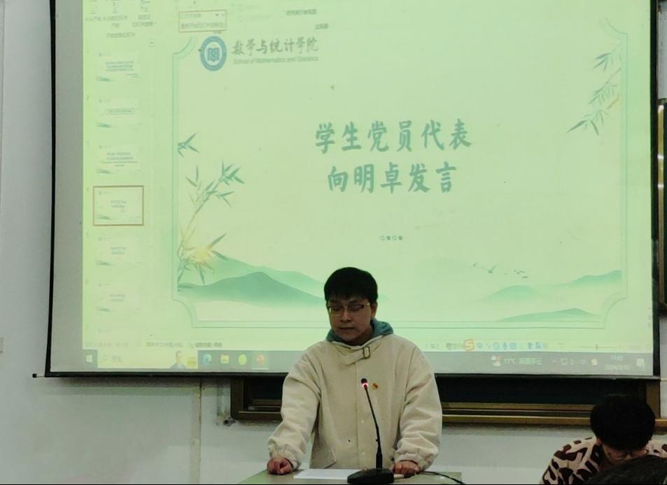 学生党员代表向明卓号召大家作为学生党员应明确身份意识,积极发挥先锋模范作用,强化学生学校命运共同体意识。