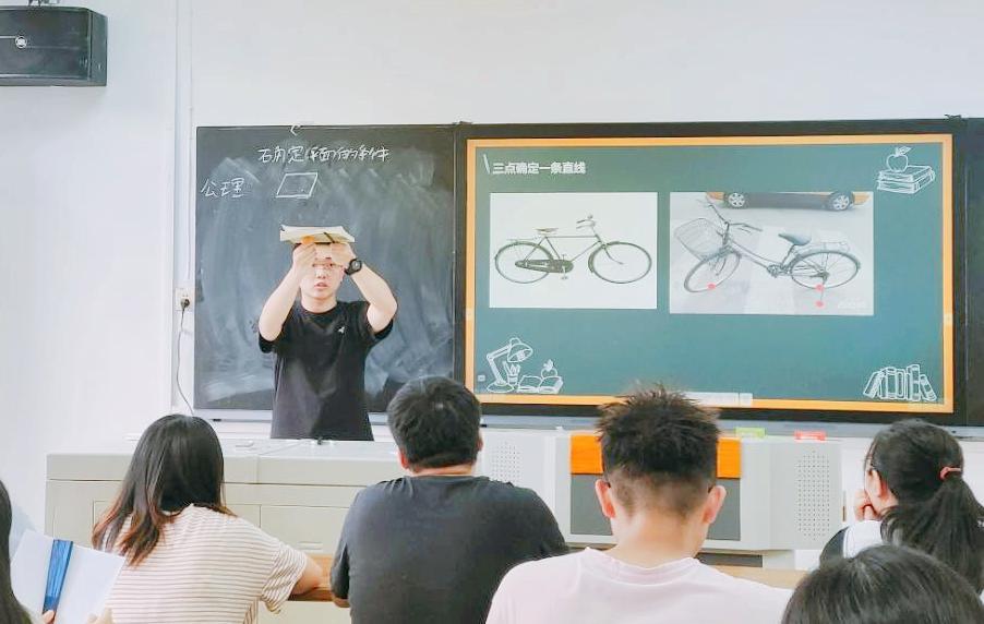三号选手李连武以一则游戏为开端讲述概率在生活中的应用,对几何概型进行情景探究、深入分析和知识整合,结合生活、合作讨论带领同学深入学习,其语言清晰、板书明确、内容丰富。六号选手刘悦通过折叠纸张讲述了行四边形的性质,并让学生亲手制作,具备独特的教学风格,课堂气氛富有趣味。