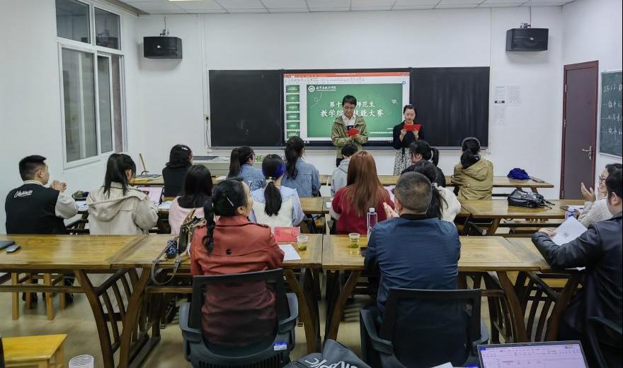 本网讯(向高贤/文 沈娟/摄)5月9日,我院大学生创新实践中心在我院3301教室成功举办第十四届师范生教学综合技能大赛。此次比赛邀请宋昆仑老师、周敏老师及王宁奎老师担任评委。