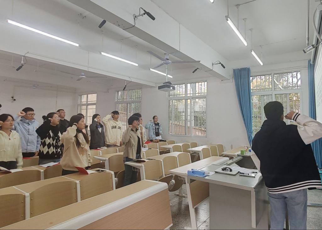 会上,廖祥宇同志的带领大家重温了入党誓词,彰显了党员们不忘初心、牢记使命的坚定信念。紧接着,陈佳馨同志诵读了《党章》第七章第四十三条和第四十四条,详细解读了党组织对党员的处分规定以及党组织在维护党的纪律方面的责任,使党员们对党的纪律有了更深刻的认识和理解,进一步增强了纪律意识和规矩意识。