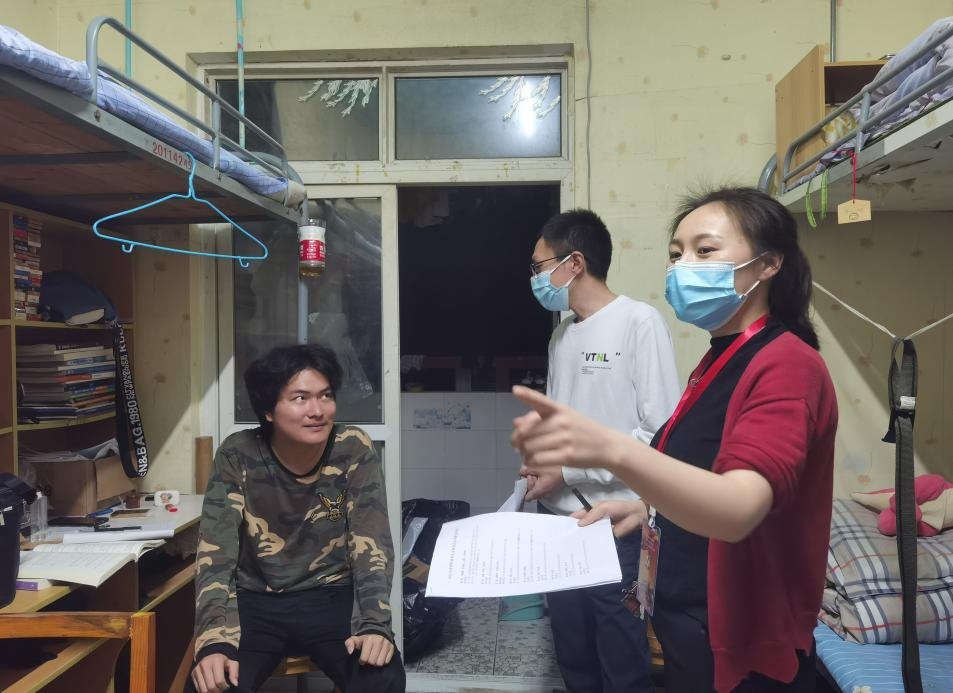 本网讯(见习记者 樊蕙 盛琼辉/文 程晋 樊蕙 盛琼辉/摄)为提醒同学遵纪守法、注意疫情防控以及更好的了解关心同学们的学习和生活问题,4月28日晚,我院学生党支部黄丽娜同志、刘聪同志、廖祥宇同志及所有学生党员进行寝室走访。